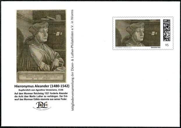 Hieronymus Aleander, auch Girolamo Aleandro, lebte von 1480 bis 1542. Papst Leo X. sandte ihn 1520 als Nuntius an den Hof Karls V. Auf dem Wormser Reichstag verlangte er 1521, über Martin Luther sofort die Acht zu verhängen.